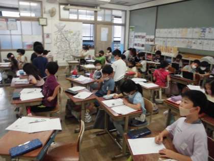 「町たんけん」も今回で最後でした。今日は5つの場所に5つのグループがインタビューに行きました。みんな頑張ってインタビューし,戻ってくることができました。