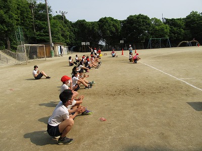 1組と2組でタグラグビーの交流をしました。違うクラスの友だちと試合をすることがとても楽しかったようです。