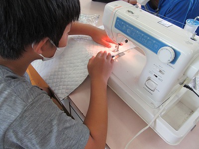 ミシンでわきを縫い,袋のような形になったのを見て,大興奮でした!