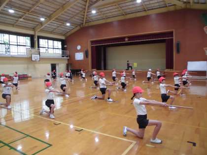 5年生は、「うたの2022」でフラッグを使って団体演技をします。本日は、棒だけを使っての練習でしたが、みんな本番さながらの雰囲気で真剣そのもの。2回目とは思えない演技の出来栄えでした。