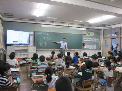 算数の「あまりのあるわり算」の学習です。あまりをどのように考えるかを図をつかって考えていました。
