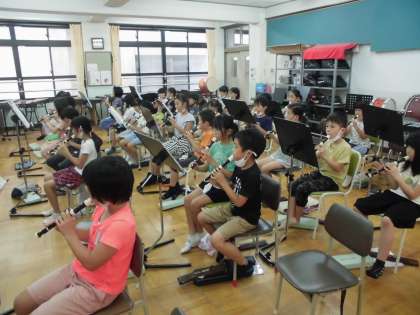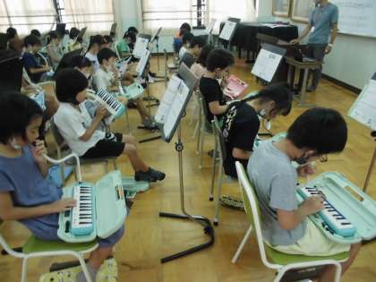 けんばんハーモニカでは「ゆかいな木きん」という曲を初めて練習しました。この曲もとっても速い曲で、子どもたちもびっくりでした。