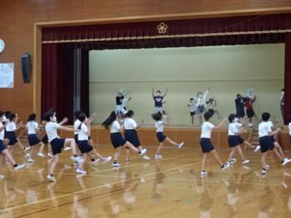高学年が準備体操の練習をしています。少しずつ形になってきて運動会らしくなってきました。