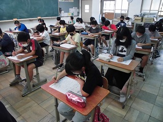 本日、その活動の一環として「ことばみがき検定」を行いました。これまで学習してきた国語科の範囲から出題し、子どもたちが力試しをしました。この取組を通して、子どもたちの語彙が増えることを願っています。