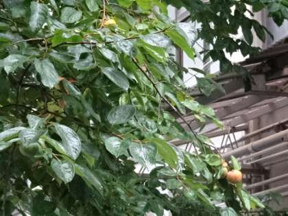 校庭に面した柿の木の実が色づいてきました。