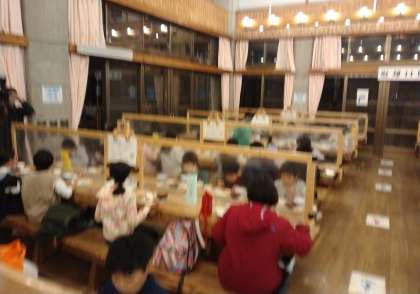 子どもたちは入浴を終え、待ちに待った夕食です。
