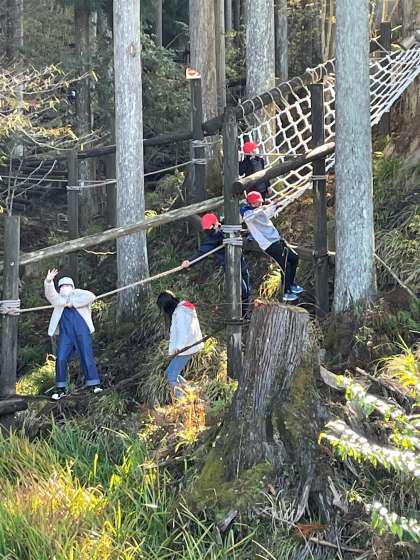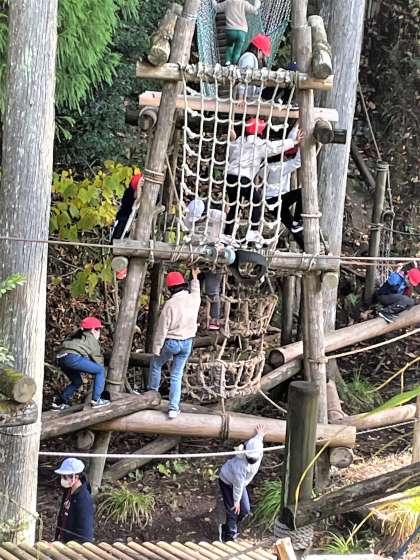 冒険の森には、アスレチックがあり、みんなで楽しみました。