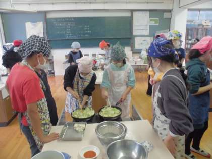 順調に料理が出来上がり、給食の時間に一緒に食べました。みんなとても満足そうな表情でした。