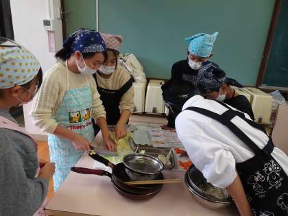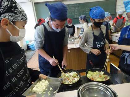 家庭科の学習で、小学校生活最後の調理実習を行いました。