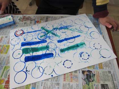 図画工作科の学習で、いろいろなものの形を写し取りました。