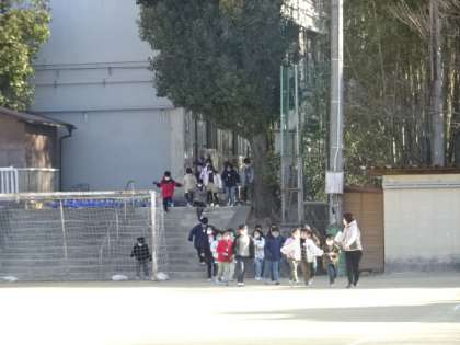 1月19日に避難訓練を実施しました。今回は、地震が起こり体育館の屋根が崩れていつもの避難経路が通れない想定で行いました。教職員が連携をとり、安全な避難経路を確保して子どもたちを誘導しました。子どもたちは緊張しながらも、真剣に落ち着いて迅速に行動できました。繰り返し訓練を行う事が大事だと考えています。