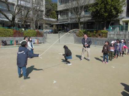 見学している子どもが、励ましの声をかけたり、跳ぶリズムに合わせて回数を数えたりしてクラスみんなで支え合っている様子が見られました。この取り組みでクラスの絆がさらに深まったように感じました。