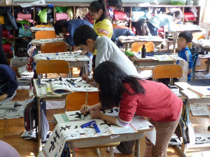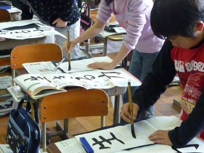 いつもの半紙とは違う大きさの画仙紙(書き初め用紙)に、