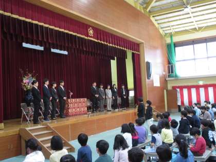 新たに赴任する教職員を迎え、6年生2名がお迎えの言葉を言ってくれました。しっかりと覚えてメモを見ずに話してくれ、素晴らしかったです。