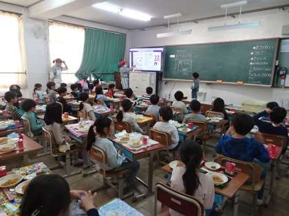 日直当番の子も、前に出て献立紹介をがんばっていました。