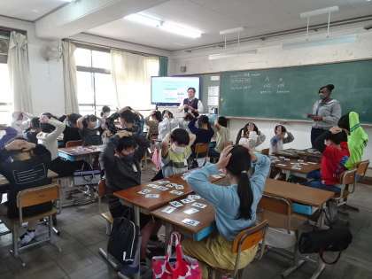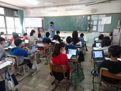 それぞれの学級で集中して学んでいました。3組はALTの先生と英語担当が授業をしていました。