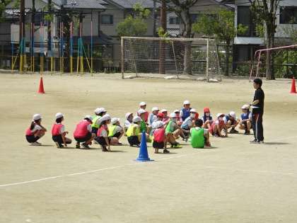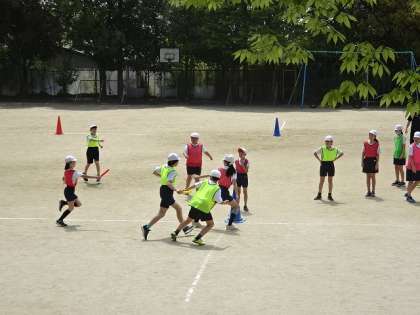 チームで速く走るためにどんなバトンパスが良いのかを考え、練習をしてから、本番のリレーをしました。
