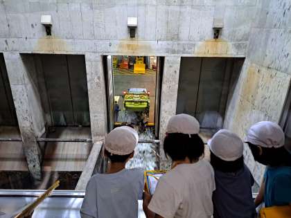 絶え間なく集められてくる缶や瓶、ペットボトルなどのたくさんのゴミの量や巨大なクレーンに驚いています。機械だけでなく人の手でも分別されています。