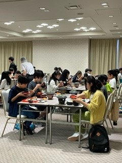 夕食は豪華でご飯が進むメニューでした。おかわりをたくさんしていました。