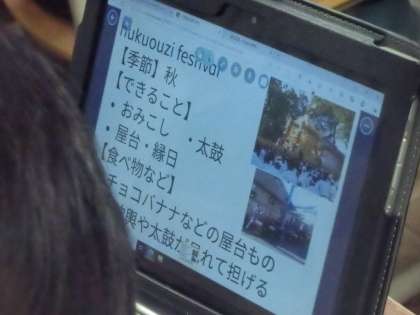 ロイロノートを使って、お祭りの写真やおすすめポイントをまとめていました。