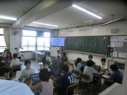 5年生の学習の様子です。国語科の学習で「スポーツを見るならテレビで見るか、会場で見るか」とテーマで話し合いをしました。グループに分かれて、理由を説明しながら討論していました。