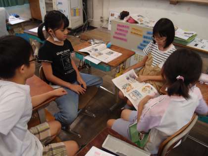 初めての交流ということで、子どもたちも先生もドキドキでしたが、しっかりテーマをについて考えました。4年生のお話は「金色の魚」でした。金色のさかなの気持ちを考えながら、お互いに意見を交流をすることができました。