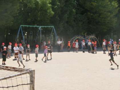 3年生からスタートして、4年→3年→4年→3年と交互にバトンをつないで走ります。