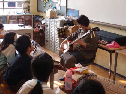 また、ゲストティーチャーの先生が三味線も紹介してくださり、実際に三味線の音色も聴くことができました。