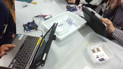 でも,考えた後に答え合わせをして,実際にダウンロードして試してみると「明かりがついた!」,「プログラミング通りになった!」などの喜ぶ声が聞こえました。