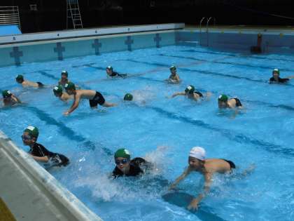 良いお天気になり、1年ぶりの学校の広いプールです。