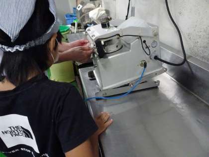 工場に入る際には、手の消毒だけだけでなく、靴の裏も消毒してつけものを詰める体験をしました。