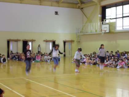 難しい計算ができるようになる様子を再現したり縄跳び名人が登場したりと、ユーモアあふれる発表でした。