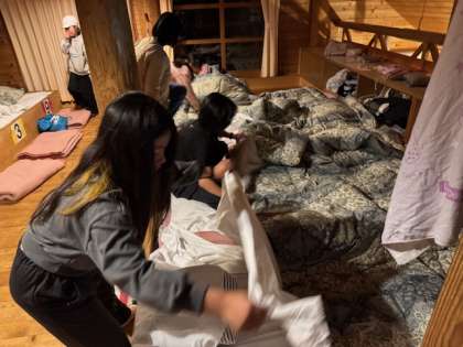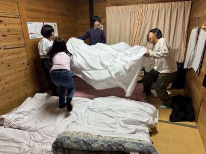 夕食の後、シーツを受け取り、ロッジに帰って布団を敷きました。