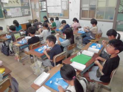 今日の図工はねん土を使って、自分が想像する「マイタウン」をつくりました。