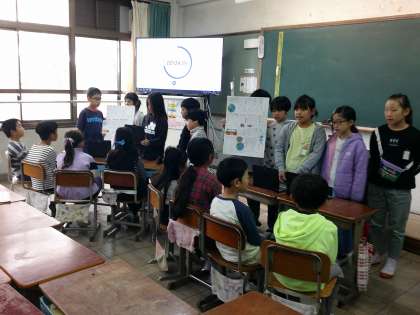 難しい言葉は分かりやすく言い換えたり、クイズを出したり、3年生に伝わるような工夫をしていました。