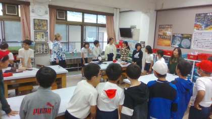 ALTのハリー先生が来られる日の中間休みは,学年ごとに一緒に遊びます。6年生なら少し難しい英語のクイズをしたり,2年生なら輪になって英語版の伝言ゲームをしたりしています。みんなハリー先生が来る日を楽しみにしています。
