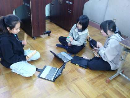 できた音楽を演奏し,聴き合いました。ふりかえりでは,『同じ楽器を使っても,リズムが違っておもしろい音楽になった』や『曲に盛り上がりがあって,お祭りみたいだった』などの意見が出ました。