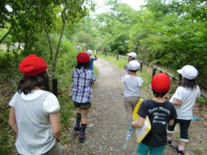毎年春の遠足は1・2年生合同で行き,園内を子どもたちだけで探検します。