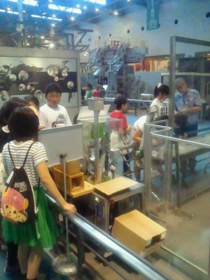 最新の紡績機械のすごい技術力を見て驚いたり,車の部品を作る技術を使って作るストラップ作りを体験したりしました。