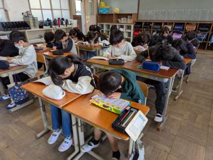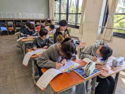 新出漢字を学習しました。筆順や読み方をおさえて、その漢字を使った言葉集めをしました。そのあと漢字ドリルに書取りの練習をしました。「とめ・はね・はらい」を意識して丁寧に書いていました。宿題のやり方もあわせて知り、続けていくことで漢字をマスターしていってほしいと思います。