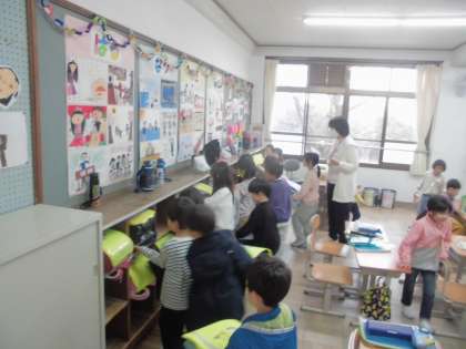 1年生 帰りの用意をてきぱきと