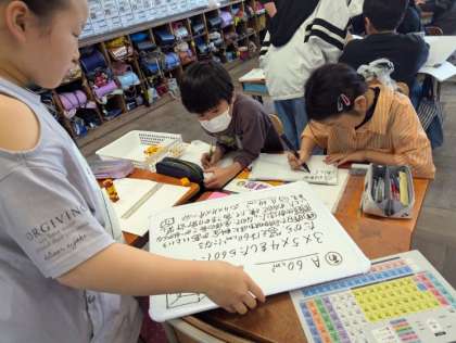 算数の「体積」の学習で直方体と立方体の体積を求めました。グループごとに1㎤の立方体を具体的に並べたり、計算で求めたり、どうしてそうなるのかいろいろ考えていました。結果的に直方体と立方体の体積を求める公式を導き出すことができました。次からはこの公式を使って体積を求めていきたいと思います。