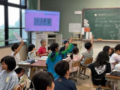 本日、1・2時間目に京都府立聾学校の4年生と交流しました。社会科で学習していることを使って、都道府県クイズをみんなで行いました。