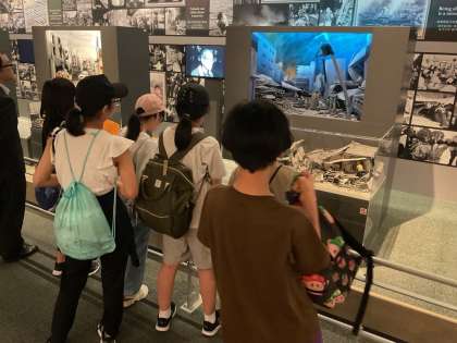 最初にシアターで、阪神淡路大震災の被害の様子を映像で観ました。地震で崩れ落ちる建物の再現映像は衝撃的でした。その後、展示室で多くの資料を見学し、震災の被害の大きさを実感するとともに、復興までの多くの人の取組について学びました。