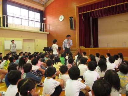 低学年の子どもたちも,真剣な表情で聞いていました。