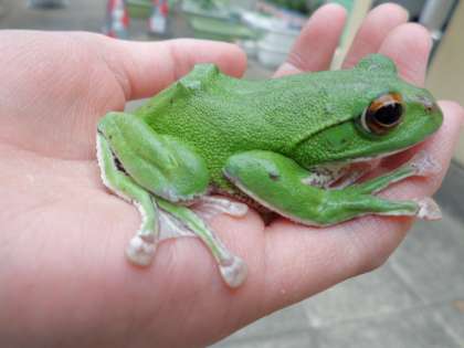 掃除をしているとカエルが出てきて、みんな大喜びでした。