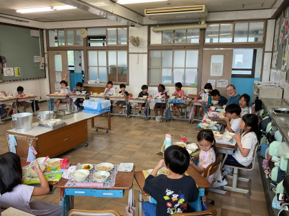 久しぶりのALTの先生との再会に「Hello!」と英語でしゃべりかける子ども達でした。