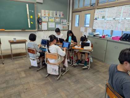 社会の時間に『米作り』について調べ、その中で興味を持ったことをまとめ、友達に発信しました。いろいろな角度から米作りについて調べ、交流する中で米作りが盛んな理由やどのような工程で米作りが行われているかなどたくさんの学びがありました。みんな米作りハカセになれました。