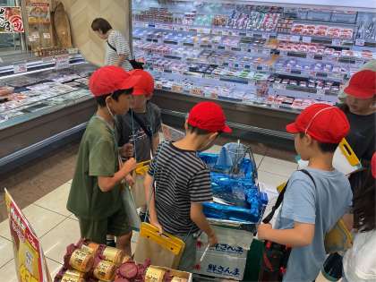 今日は社会の学習の一環でスーパーマツモトに見学に行きました。裏口から入れてもらい、店内を見学させていただき、お店の工夫について調べました。