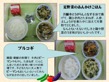 夏には,できるだけ夏野菜をたくさん食べてほしいと思っています。
